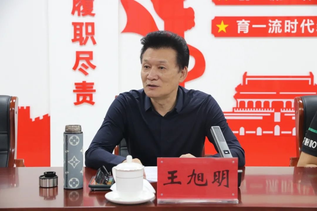2022年9月15日,王旭明与其工作室一行赴河北定兴,在定兴县教育系统开展调研工作。习近平总书记在今年的教师节给北京师范大学“优师计划”师范生的回信中指出,要砥砺品格,增长传道授业解惑本领,为培养德智体美劳全面发展的社会主义建设者和接班人贡献力量。为贯彻落实习近平总书记指示,教育部提出,用事关未来的计划办好最代表未来的基础教育,让教育效能助力每个学生都有人生出彩机会,大力促进义务教育优质均衡,大力促进县域高中整体提升。在定兴县教育系统工作调研会上,王旭明表示,教育系统干部及后备干部整体水平提升,是贯彻党和国家领导人对教育工作提出的要求,落实教育部指示的重要体现。王旭明结合自身工作经验,分析现阶段教育工作的要求、目标及现状,提出要用求真务实的理念,秉持陶行知 “千教万教教人求真,千学万学学做真人” 思想指导教书育人工作。他深入阐述了陶行知教育思想的理论、原理、精神、主张,要求生活即教育,社会即学校,教学做合一。