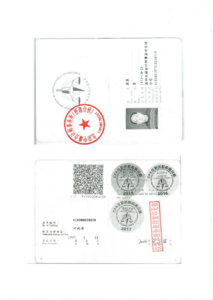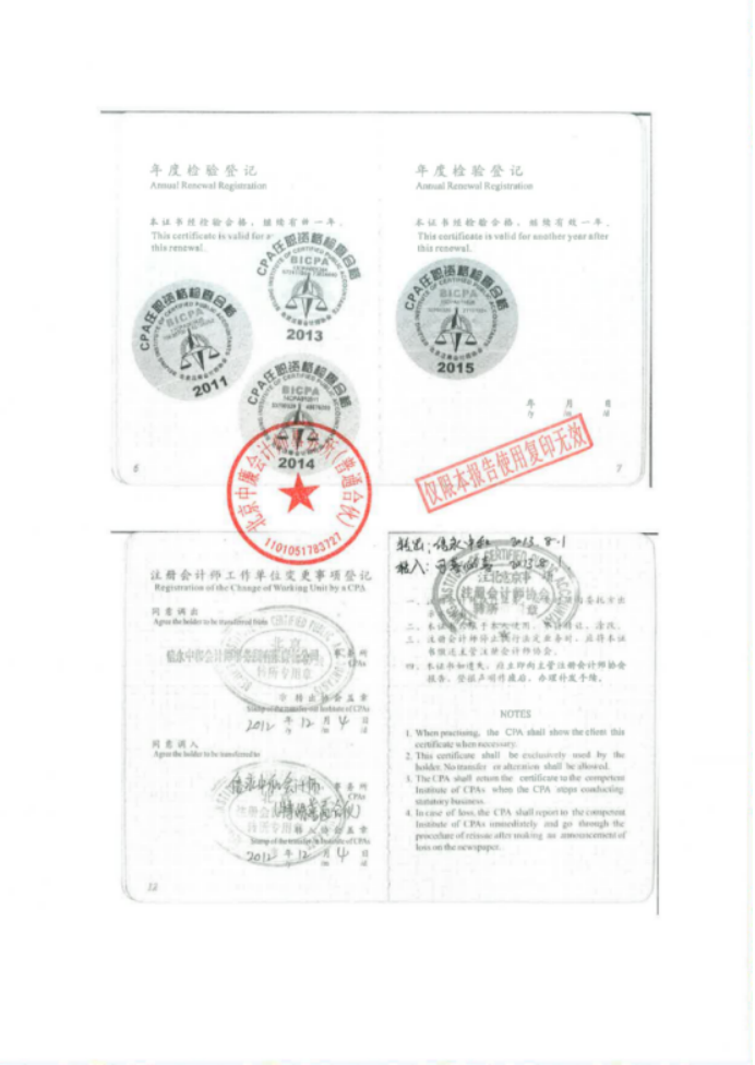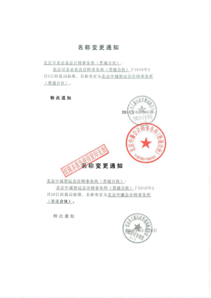 北京中廉会计师事务所(普通合伙) 中国注册会计师: