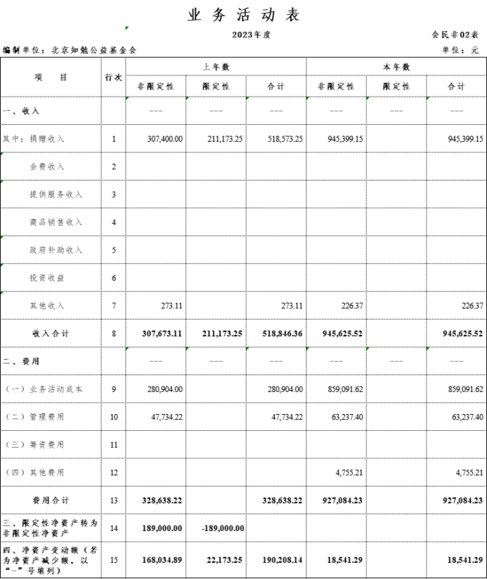2、2023年度业务活动表