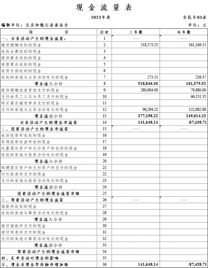 3、2023年度现金流量表
